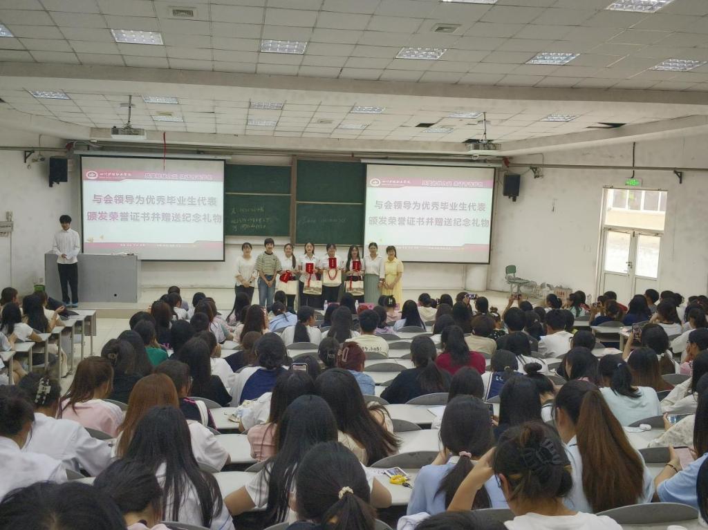 此次活动邀请到了学院四个系2021级(三年制大专)、2019级(高职)的9名优秀毕业生代表返校,她们向在校生分享了自己在大学三年如何规划、实习注意事项、专升本考试、医院规培、社会实践等方面的宝贵经验。并与现场同学充分互动交流,现场气氛热烈而活跃。与会领导向优秀毕业生颁发荣誉证书并赠送纪念品。