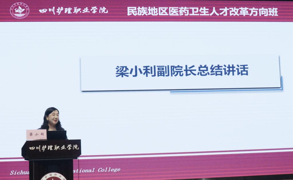 梁小利总结了民族地区医药卫生人才培养改革方向班的背景意义和广阔前景。她向同学们提出三点要求:一是要树立正确的择业观,民族地区亟需广大青年投身其中并推动卫生健康事业发展,能够更好地实现自我价值;二是务必珍惜学院所搭建的平台,持续提升综合素养,担起新时代青年医学生的责任与使命;三是要将个人的发展融入党和国家发展的宏伟蓝图,为助推乡村振兴战略、实现中华民族伟大复兴贡献自身力量。