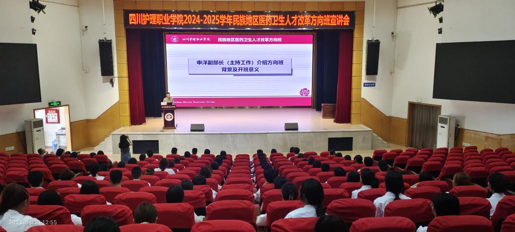 为强化民族地区医药卫生人才培养,进一步推广我院国家级教学成果奖项目——西部民族地区基层医药卫生人才“四方协同,三融三接”培养体系创新与实践,助力乡村振兴,6月13日,学院2024—2025学年民族地区医药卫生人才改革方向班宣讲会在成都校区举办。学院副院长梁小利、相关部门负责人及成都校区2023级来自三州地区的全体学生参会。