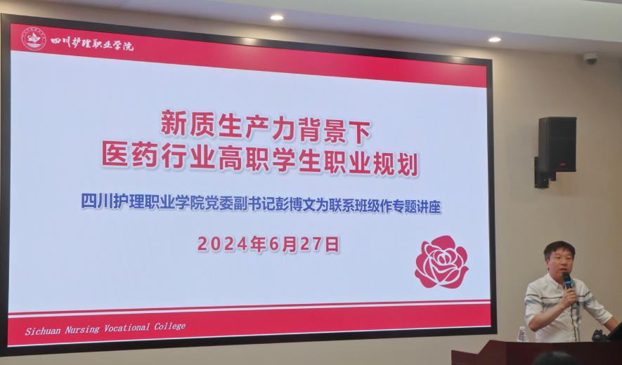 6月27日下午,学院党委副书记彭博文为联系班级2022级中药学1班学生讲授题为《新质生产力背景下医药行业高职学生职业规划》主题讲座。