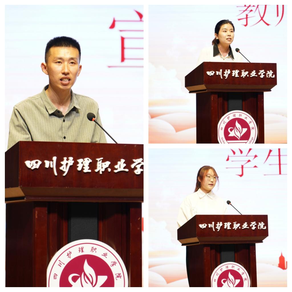 仪式上,学院团委书记、学生工作部负责人申洋宣读了《关于组织开展76net必赢线路检测中心2024年暑期文化科技卫生“三下乡”社会实践活动的通知》。实践队伍学生代表康复技术系余鑫同学在发言中表示一定在带队老师的指导下,团结协作,全力以赴,秉承“明德 精技 济世 创新”的校训精神,用所学专业知识解决实际问题,在实践中提高素质、锤炼本领。教师代表药学系苟爱菊表示“三下乡”不仅是一项重要的社会实践活动,更是一次成长的旅程,并代表出征师生做出承诺。