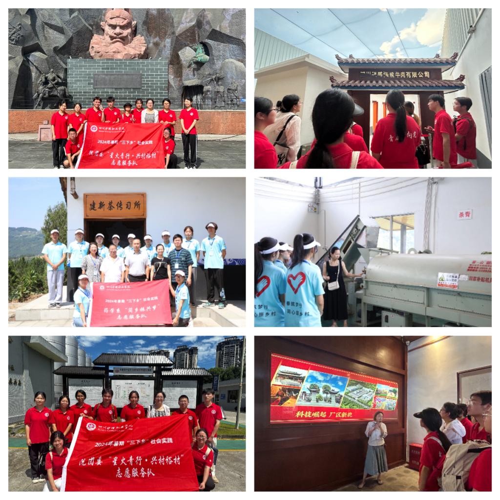志愿队深入阆中市总工会职工服务中心、四川张飞牛肉有限公司、四川保宁醋有限公司、宜华生活多圆文化创意有限公司、中国农业发展银行等了解企业发展和到中江县万福镇金坪村和中三村产业一线调研返乡创新创业;前往若尔盖县巴西镇调研了红色康养产业发展,参观了学院建设的红色康养基地;探访了马嘶新羽茶厂,了解了我国乡村振兴取得的成绩,引领青年学子将个人发展与乡村振兴结合,到基层、到民族地区、到祖国最需要的地方建功立业,用实际行动践行了“青春为乡村振兴挺膺担当”的誓言。