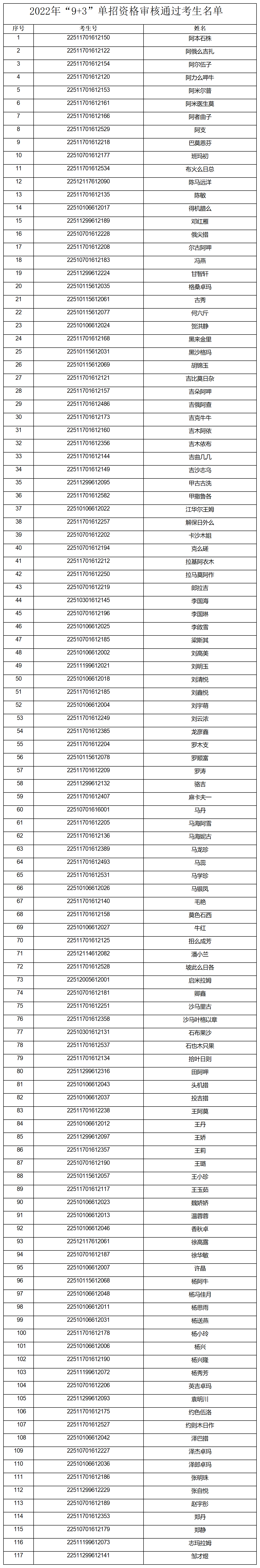 76net必赢线路检测中心2022年面向涉藏地区和大小凉山彝区“9+3”毕业生单独招生报名工作已经结束,最终通过资格审核的“9+3”考生共117人,现将名单公示如下。