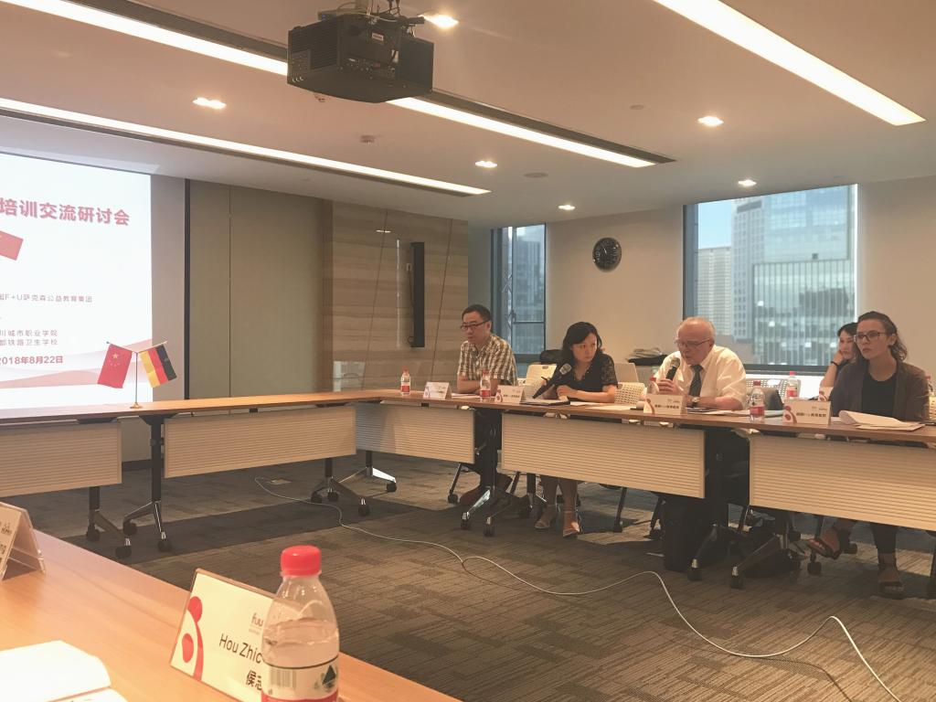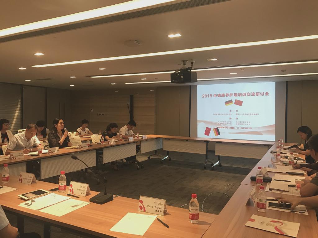 为进一步促进中德康养项目的落地与实施,2018年8 月22日上午,由四川省国际投资促进会和德国F+U萨克森公益教育集团共同主办的2018中德康养护理培训交流研讨会在成都市“中国-欧洲中心”举行。我院作为四所协办学院之一受邀参加此次研讨会,副院长姚永萍出席本次会议。