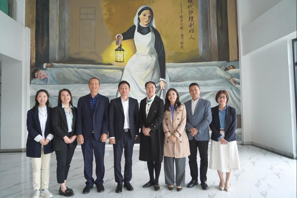 4月23日,新加坡国际教育集团董事杨波、何蓓,中国分公司总经理陈桦、办公室主任刘晓娟一行到学院德阳校区交流座谈。学院党政办公室副主任、外事处副处长周建波,护理系主任邓小利,副主任苗泓丽、淳玲陪同参观。