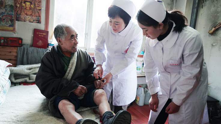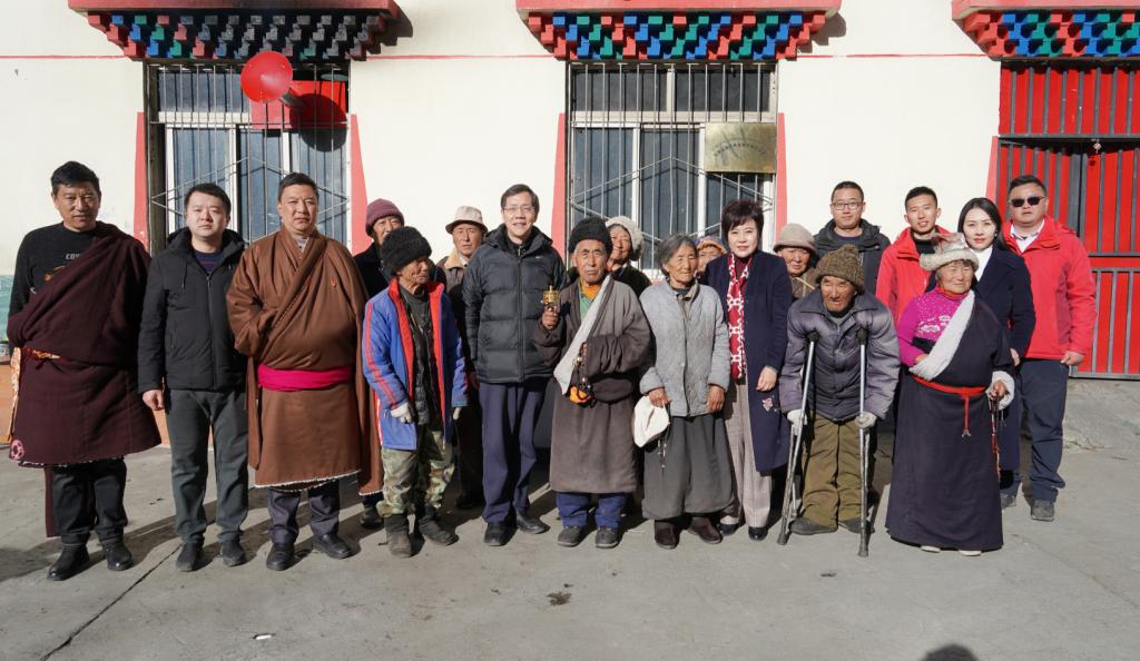 在壤塘县分管扶贫的副县长孙宏斌的陪同下,学院一行在壤塘县上寨养老院与老年人亲切座谈,询问他们的生活与健康状况。张先庚院长全面了解由我院免费为修卡村培训的养老照护员尕尔穷的生活与工作状况,并实地指导养老照护技术。她指出,我院要充分发挥卫生健康教育人才培养的优势,培养更多像尕尔穷这样的学生,为当地群众做好卫生健康保障,并代表学院为养老院送上了节日慰问金。