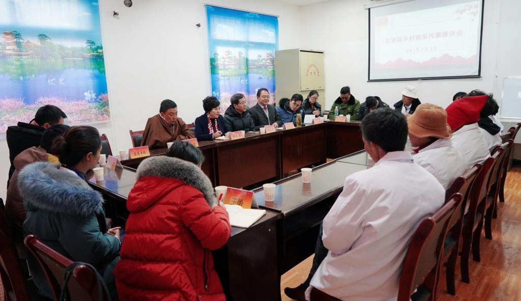 随后,张先庚院长和孙宏斌副县长以及县卫健局、县扶贫开发局相关领导一起,在修卡村组织召开了当地乡村医生和我院毕业生健康服务志愿队座谈会,深入了解乡村医生和健康服务志愿者们的工作状况、困难、建议和下一步打算。乡村医生希望学院继续加强对中西医和藏医相关适宜技术培训,延长培训时间,扩大培训年龄范围。健康服务志愿者希望在开展入户健康服务时能够得到当地政府在交通、时间、仪器设施设备等支持。壤塘县相关领导对他们的工作给予高度评价,并当场表示会从车辆、药品、医疗器械、组织协调等方面给予大力支持,保障志愿者更好开展工作。
