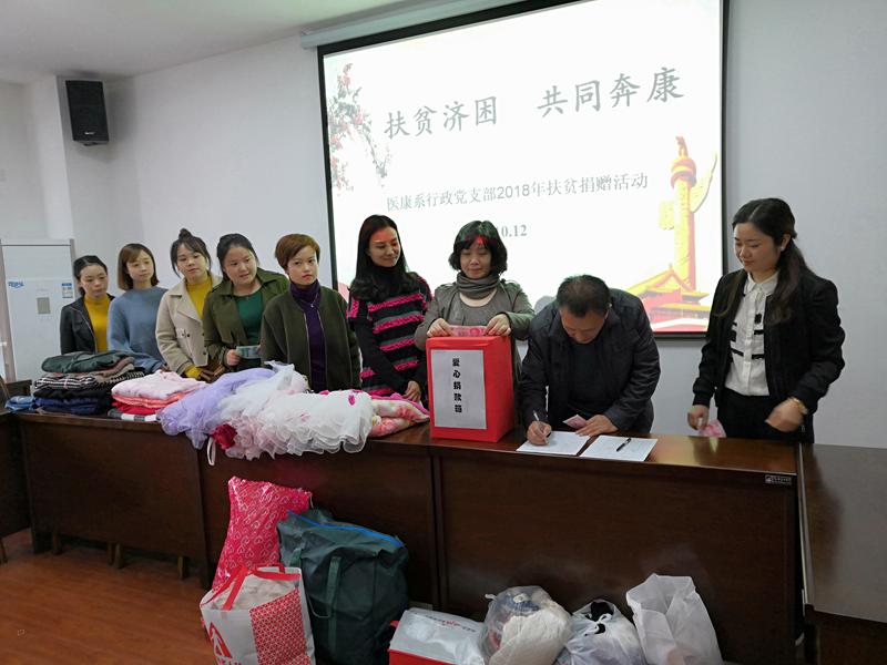 为了响应省卫生计生委的号召,进一步贯彻落实《中共76net必赢线路检测中心委员会关于开展2018年扶贫日自愿捐赠活动的通知》精神及医疗技术系、康复技术系党总支要求,医疗技术系、康复技术系行政党支部高度重视此次工作,全面动员、迅速行动,并于10月12日上午开展了以“扶贫济困 共同奔康”为主题的捐赠活动,支部党员及部分教师出席并参与了活动。