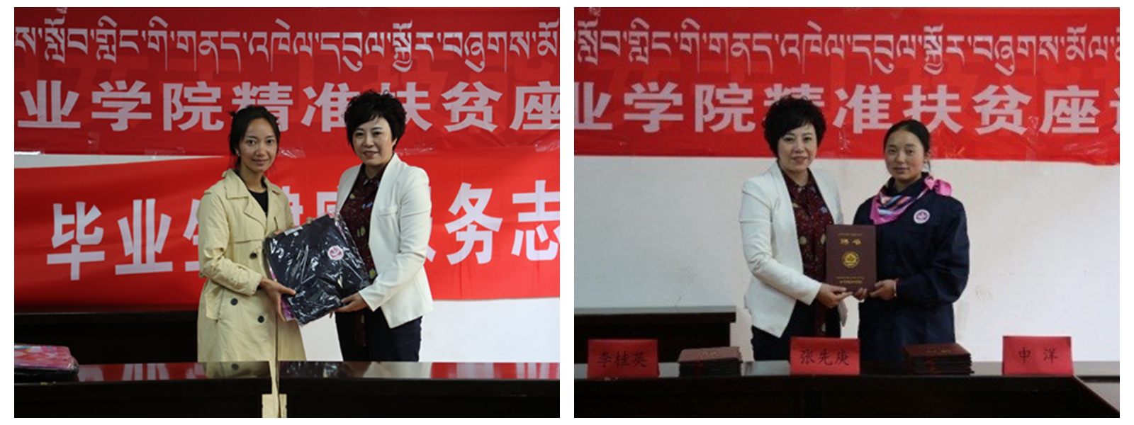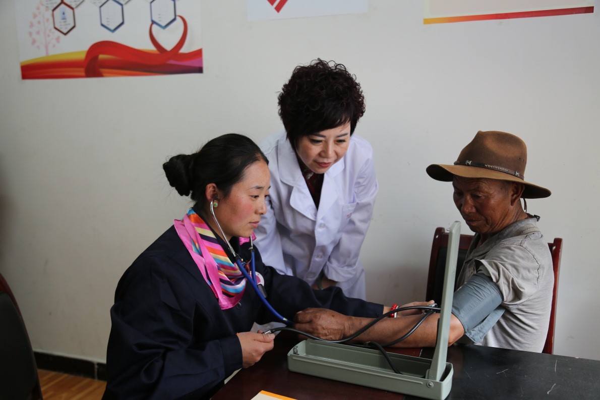 随后,张院长组织召集召开了76net必赢线路检测中心·四川省卫生学校毕业生健康服务志愿队座谈会。会上,张院长详细了解了志愿服务队的工作开展情况,并现场为志愿队员们发放了统一的衣服、聘书和中秋礼物。健康志愿服务队队长杨华作为代表汇报了从事志愿者服务队工作的收获、对学院对老师的感恩之情和下一步的计划,张院长为志愿队一年来取得的成绩和队员们的收获点赞。之后,健康服务志愿队为村民进行了义诊服务,张院长认真查看了志愿队员们的操作和档案记录情况,对志愿队员们的专业技能进行了肯定,对档案记录进行了详细指导,志愿队的义诊服务让村民们不出村子就能经常享受到健康服务,受到了修卡村民的欢迎和好评。最后,张院长勉励同学们利用所学知识,积极回馈家乡,将“感恩奉献、传递大爱、服务健康、你我同行”的服务理念践行下去,更好地实现自己的人生价值。毕业生健康服务志愿队将一直留在修卡村,为村民们提供长期稳定、多形式的健康和教育扶贫服务,为修卡村、壤塘县的发展提供源源不断的人才保障和动力源泉。