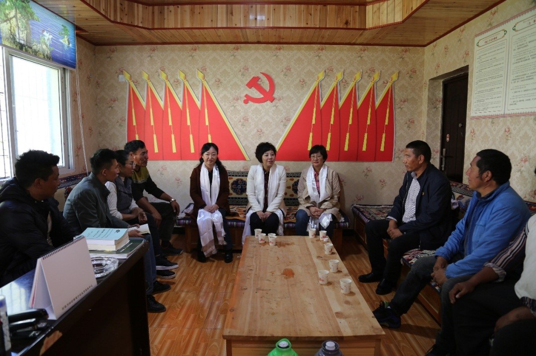 18号下午,在抵达我院对口帮扶点修卡村后,张院长一行立即与吾依乡人大主席头丹卓玛、我院驻村干部申洋、杨毅、吴林、修卡村村干部及村民代表进行座谈,详细了解我院帮扶项目推进情况。张院长代表学院感谢村民们对驻村干部工作的支持,并耐心倾听了村民们对扶贫工作的意见和建议,尤其重点听取了村民们对下一步帮扶的意见和建议。头丹卓玛主席代表吾依乡人民政府,对我院扶贫工作用心、用情和用力给予充分肯定。参与座谈的村干部和村民代表也纷纷表示要在我院的帮助下,全心全意做好项目,努力争取早日脱贫致富。了解到村上很多年轻人不懂汉语,不认识字,张院长建议成立扫盲学习班教他们认字,提高他们的文化水平和与人交流的能力,增强他们脱贫致富的自信心和内生动力,从根本上彻底脱贫。