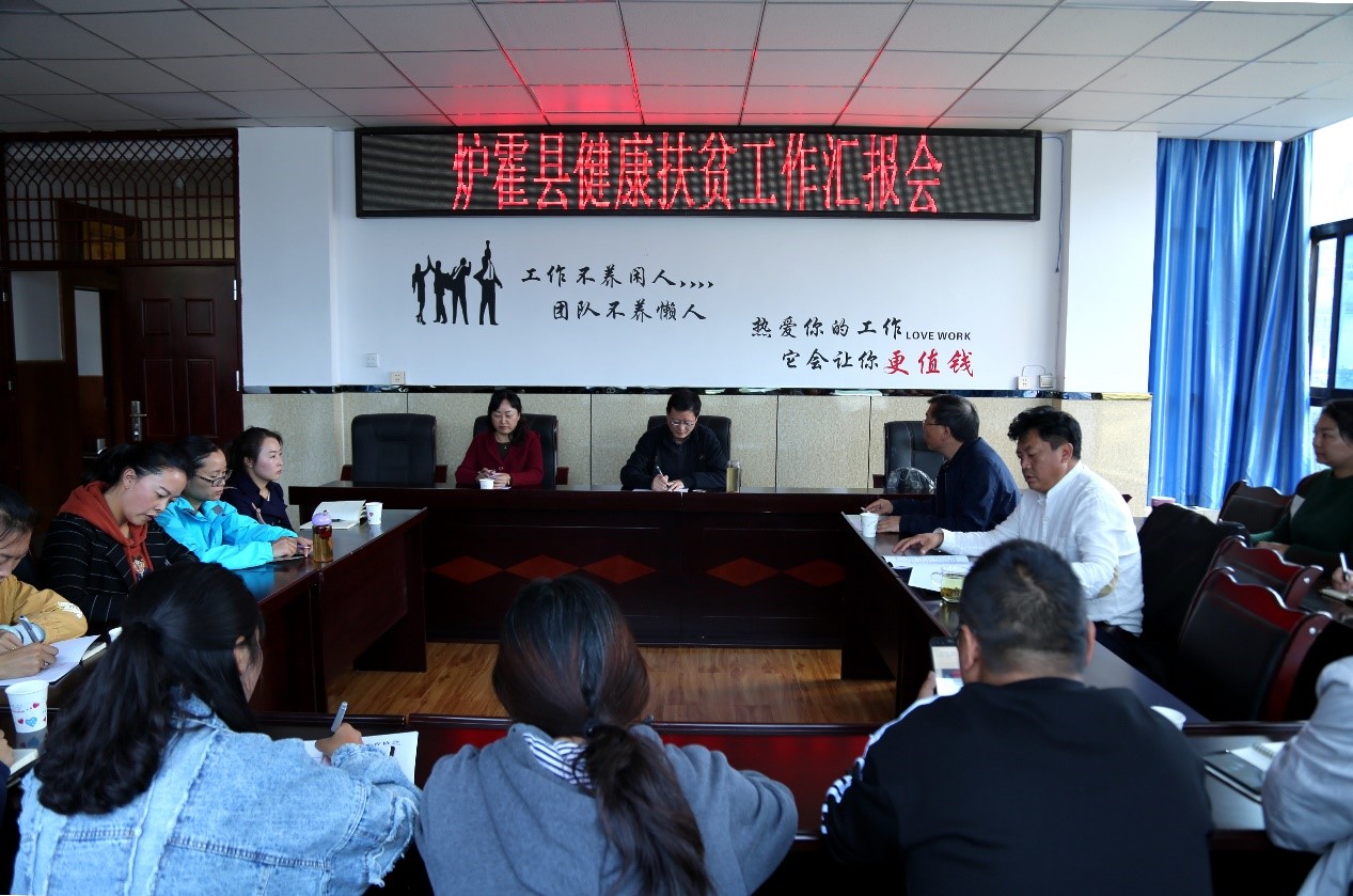 实地调研后在县卫计局会议室召开了健康扶贫工作汇报会。炉霍县卫计局局长呷瓦扎巴及县级医疗机构负责同志参加会议。会议听取了县卫计局关于体系建设、健康扶贫保障、医疗救助、创等达标、精准结对帮扶等方面的工作汇报,并就健康扶贫工作进行了全面的交流,对当前全县健康扶贫工作存在的问题进行了总结梳理,对下一步健康扶贫工作提出具体要求。