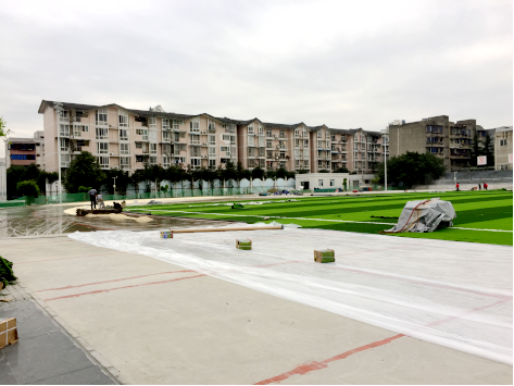 学院党委为了维护师生安全,响应国家教育部号召,决定将龙泉校区运动场改造成环保型运动场。赵斌副院长带领学院的基建团队反复与施工单位——四川浪臣体育产业发展有限公司进行了艰苦洽谈后达成协议,约定塑胶跑道施工按上海《学校运动场地塑胶面层有害物质限量》T/310101002-C003-2016团体标准施工,人造草坪按深圳市(试行)工程建设技术规范--合成材料运动场地面层质量控制标准建设。