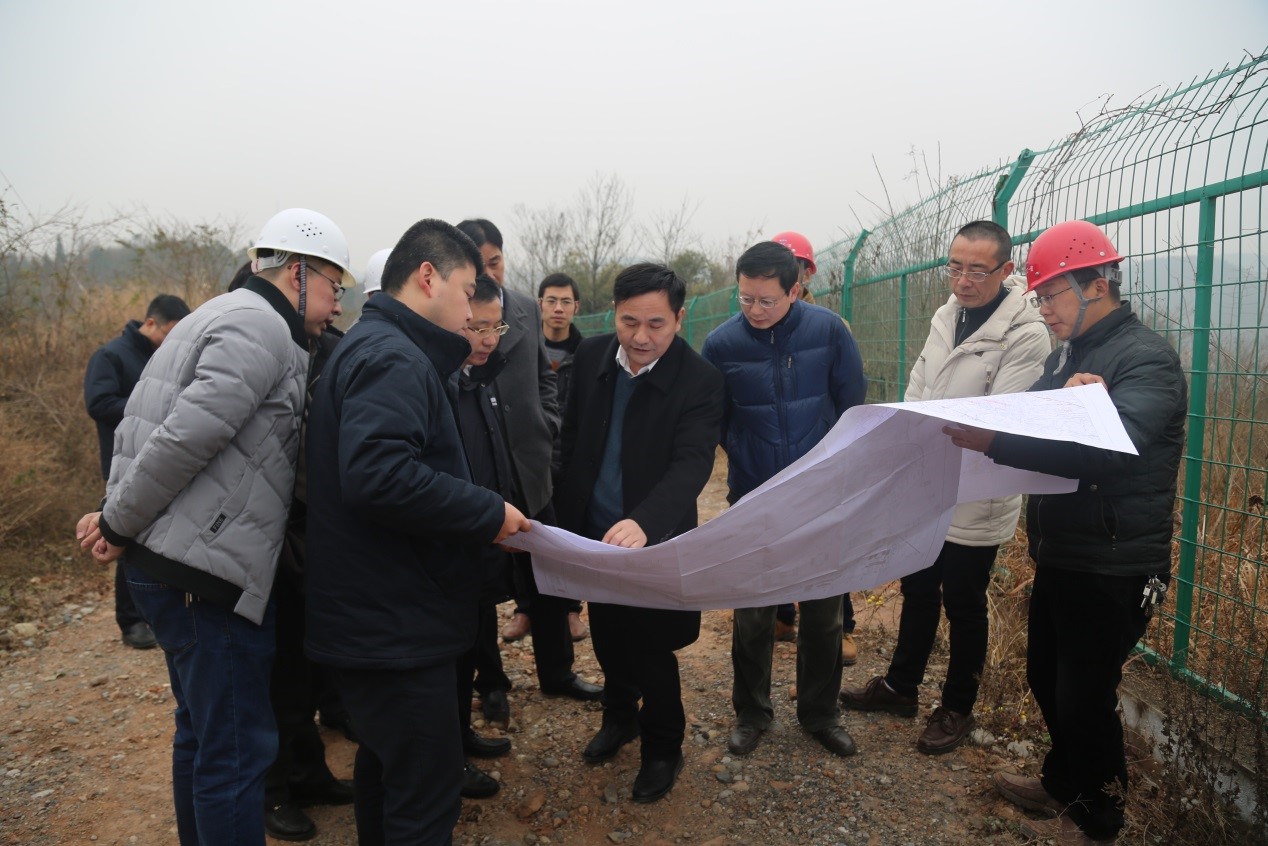 大家实地查勘了受高压线影响的项目2号3号教学楼区域施工现场,结合规划方案讨论“谭寿二路高压线”迁改计划与措施。