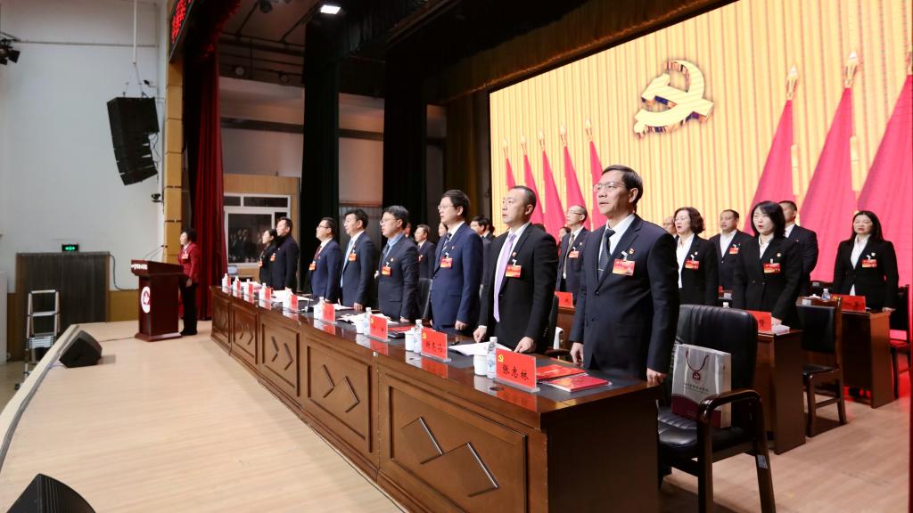 上午9时,大会在庄严的国歌声中开幕。会议应到正式代表100人,实到100人。邀请退休老同志、民主党派和党外人士、学院附属医院代表等29人列席会议。