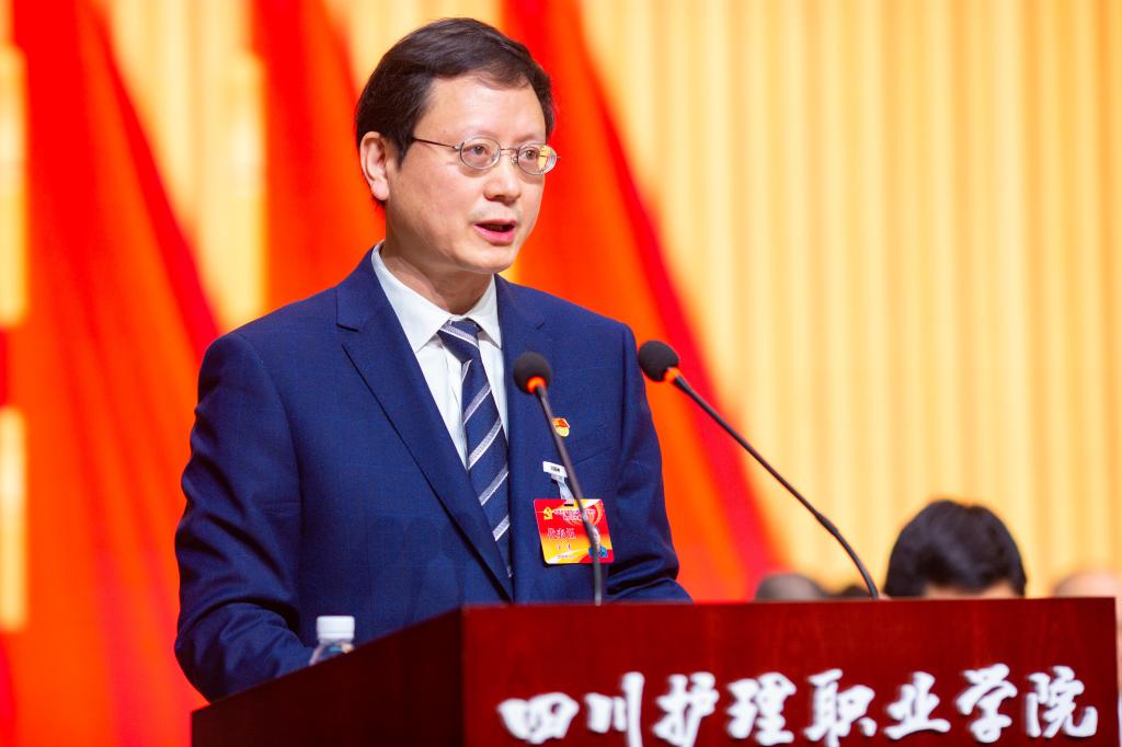 在报告最后,江涛同志号召,要团结带领全校师生向建设卫生健康类高水平本科职业大学的目标奋力前行!为实现“两个一百年”奋斗目标和中华民族伟大复兴中国梦贡献川护智慧与力量!