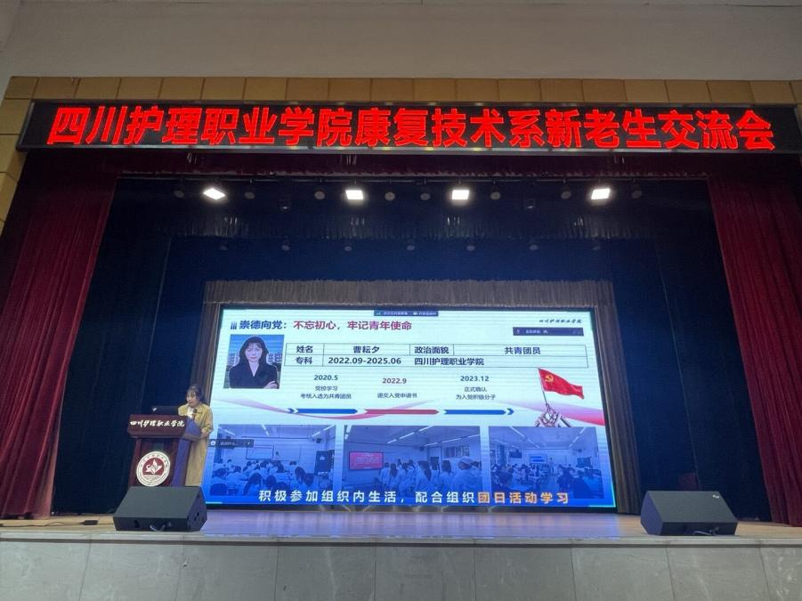 为促进新生迅速融入大学生活,明确学习及职业生涯的方向,康复技术系于10月27日在成都校区举办了以“朋辈引领相伴同行 榜样力量薪火相传”为主题的新老生交流活动,活动特别邀请了系部6名优秀毕业生重返母校,与在校生面对面交流并分享宝贵经验,线上线下近500人参会。