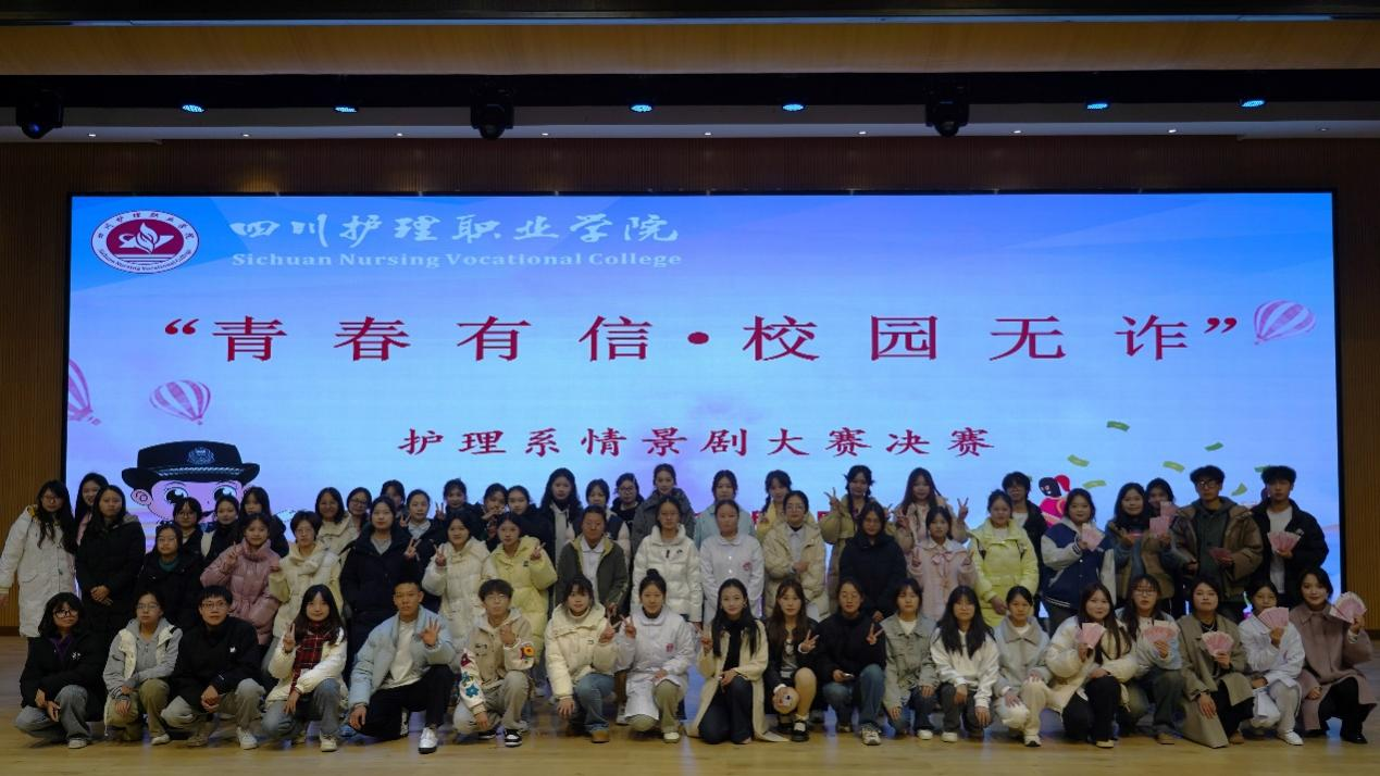 为进一步强化防范电信网络诈骗宣传,充分发挥青年大学生在反诈宣传工作中的主观能动性,护理系于12月1日在德阳校区举办以“青春有信 校园无诈”为主题的防诈情景剧大赛决赛。比赛由保卫处相关工作人员、系部辅导员代表作为参赛评委,共计17支学生队伍174人参加比赛。