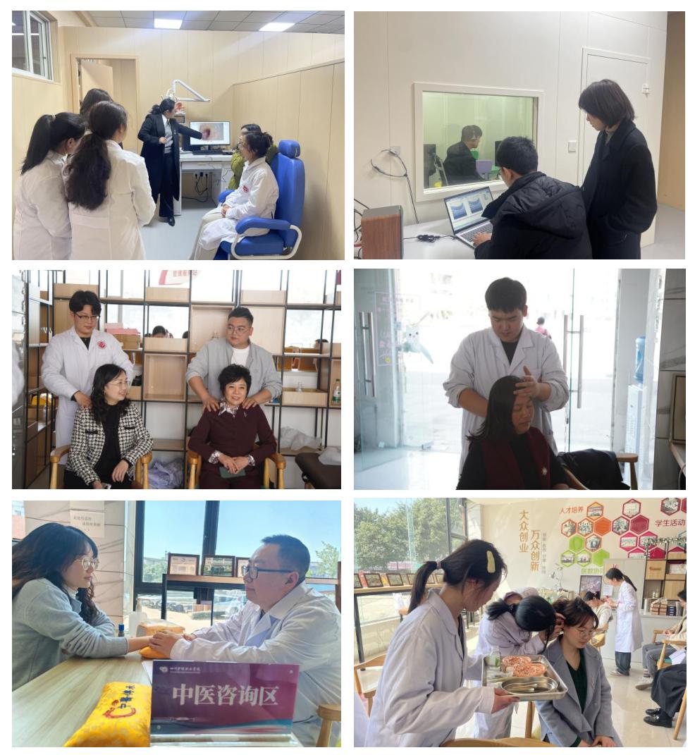 本次活动通过三大特色板块立体展现科技创新赋能传统医学的实践成果。听力康复数字技术应用区依托产教融合实训平台,运用智能测听设备为参与者完成精准听力筛查,同步开展听力健康科普教育。智慧中医诊疗体验区创新运用智能体质分析系统,融合中医四诊原理,现场生成个性化健康干预方案。中医适宜技术体验区深化产教协同理念,组织民族地区医药卫生人才改革方向班学生现场开展推拿、拔罐、艾灸等服务。