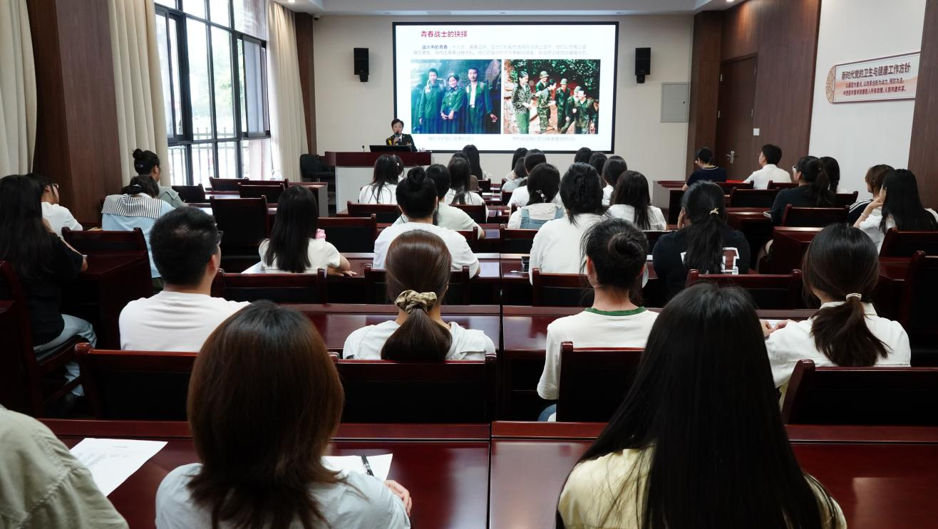 6月5日,医疗技术系党总支邀请原成都军区总医院输血科副主任技师廉维为师生作“弘扬时代精神 建设教育强国”主题宣讲。通过聆听红色故事、诗歌朗诵、交流座谈等开启沉浸式学“五老精神”活动。副院长梁小利出席,医疗技术系80余名师生参加。