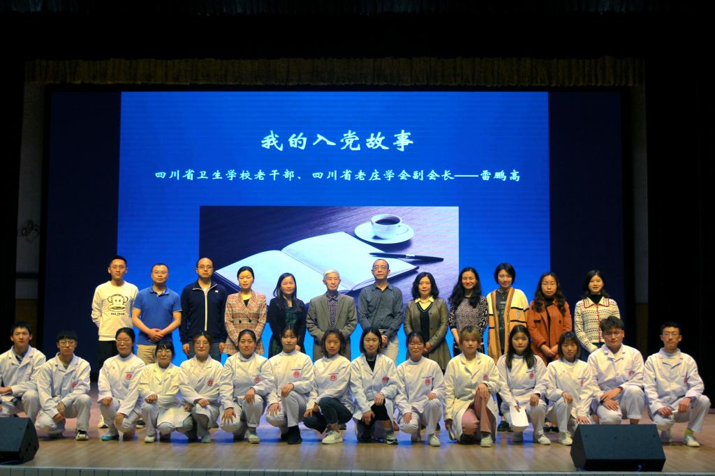 雷鹏高同志曾担任过四川省卫生学校的党委副书记,是一位有50年党龄的退休老同志。他结合自身经历,分别从参军历史、奋斗故事以及退休后的学习生活三个阶段讲述了他的入党故事。在回忆自己的参军历史时,雷书记特别讲到了人民解放军的优良传统。当他说到,成为一名共产党员是他人生的一个光辉的起点,喜悦和自豪溢于言表。讲述奋斗故事时,雷鹏高分享了中国医科分院简阳时期陆如山、王光平等老专家们的故事,希望大家传承红色基因,学习老一辈卫生人艰苦奋斗、勇于奉献的敬业精神,不断学习成长。他指出,中国共产党的初心、使命和宗旨与传统文化有着非常密切的联系。大家要把中国传统文化和所学专业结合起来,在当好人民健康的卫士时,塑造自己幸福的人生。