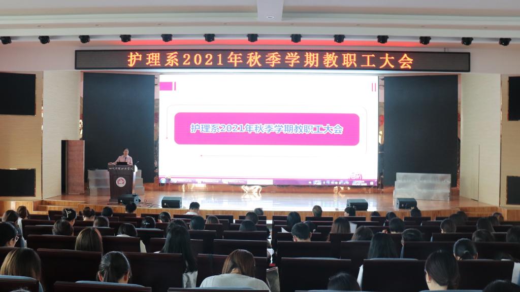 9月2日,护理系 2021年秋季学期教职工大会在德阳校区学术报告厅举行。学院党委副书记张志林出席会议,护理系党总支书记黄鸷、党政办副主任周建波、护理系副主任苗泓丽、淳玲、护理系党总支副书记田炼、健康培训中心副主任蒋虎,护理系全体教职工参加会议。会议由护理系主任邓小利主持。