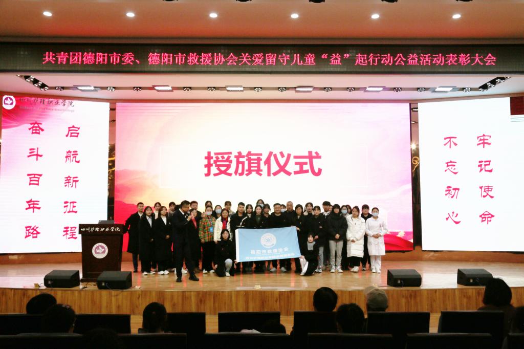 为积极响应党的十九大报告中关于志愿服务的相关精神,广泛宣传典型在青年学生中的示范作用,2021年12月19日下午,护理系党总支辅导员党支部携手德阳市救援协会,共同举行共青团德阳市委、德阳市救援协会关爱留守儿童“益”起行动公益活动表彰大会暨志愿服务队授旗仪式。