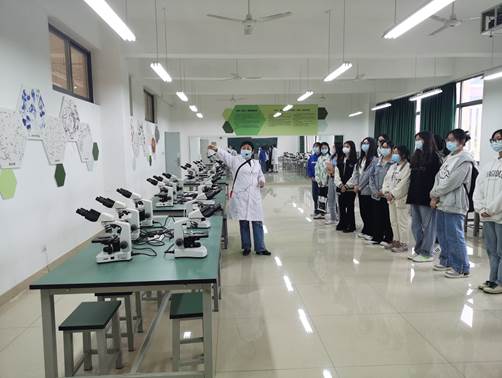 谢玲林老师为学生志愿者们介绍了生命健康科普基地的场馆分布,讲解了学院创建四川生命健康科普基地的意义和作用。