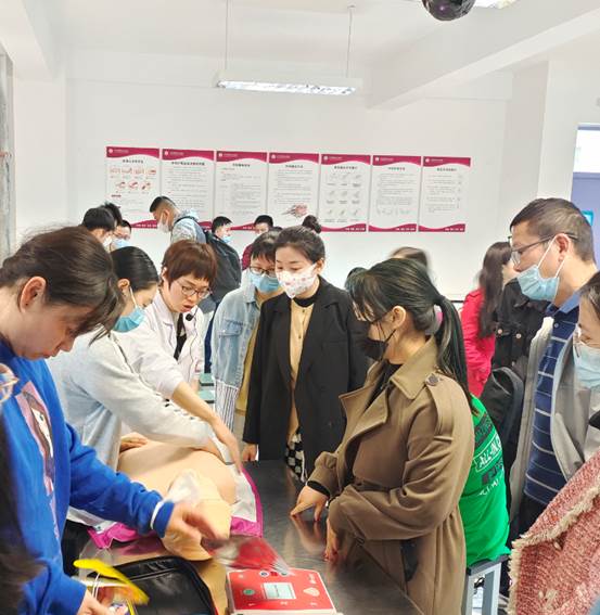 2022年3月24日下午,基础部组织全体教师在德阳校区护理实训大楼开展了急救技能培训演练活动。护理系教师曾学燕作为培训专家对学员开展创伤现场救护及自动体外除颤器(AED)使用培训。