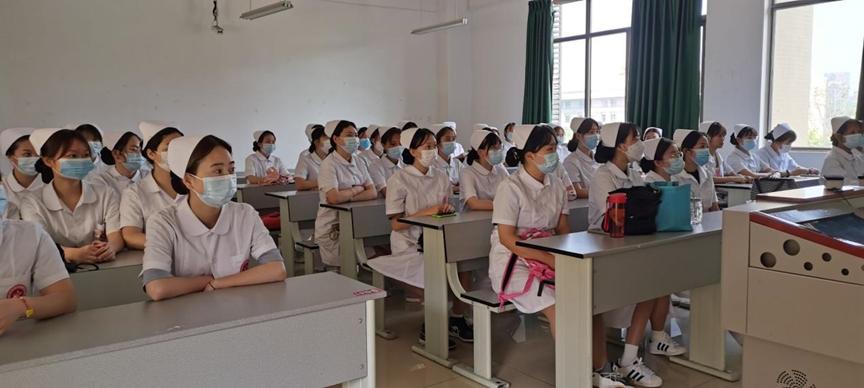 会上,学生身着护士服,全神贯注,会后积极讨论,直抒胸臆。