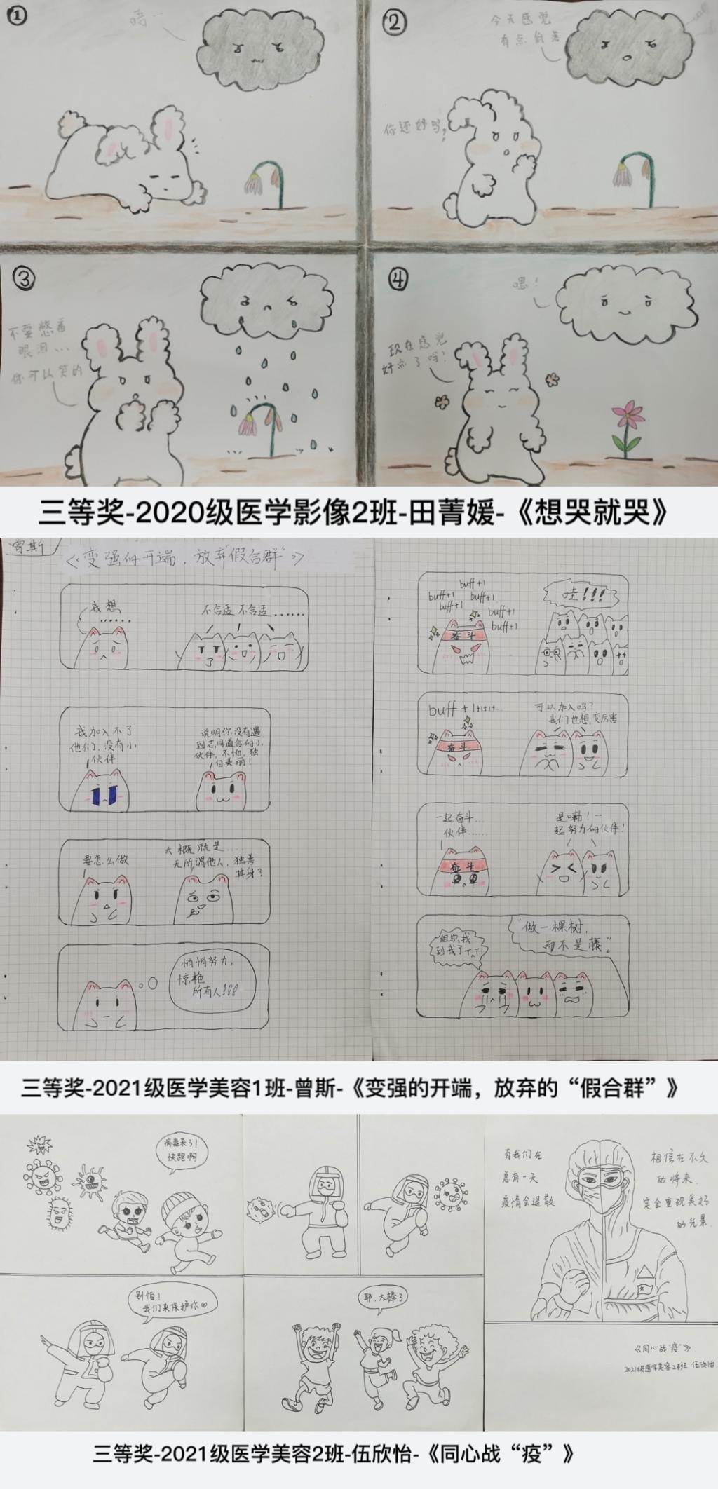 为进一步丰富同学们的心理健康知识,不断推动我系大学生心理健康教育的创新发展,营造一个健康积极向上的心理健康氛围,医疗技术系以“5·25大学生心理健康日”为契机,于5月12日至30日在成都校区开展了“奋斗新青年 拥抱心世界”为主题的心理漫画征集比赛。