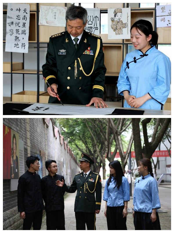 活动期间,“五老”宣讲成员分别在校园内与同学们进行了传统文化分享交流,并对同学们进行书法指导,参加诗歌朗诵活动等。