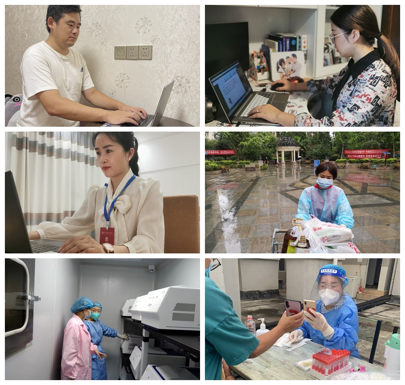 甘于奉献,强化服务保障工作。暑假以来,护理系行政人员一直坚守岗位,做好各项常规、疫情防控、后勤保障等工作。面对多变的疫情形势,行政人员不断摸排全校师生的疫情信息,持续统计异常情况和核酸检测情况,为保障师生的健康安全和线上教学的有序进行贡献力量。此外,自疫情突发以来,护理系党员们冲锋在前,利用工作之余积极投身到疫情防控工作中,分别在省卫生健康委工作组、所在社区、小区等参加志愿服务,参与了执勤防控、登记信息、配送物资、核酸检测扫码等工作,发挥了党员先锋模范作用,并用实际行动践行了“奉献、友爱、互助、进步”的志愿服务精神。