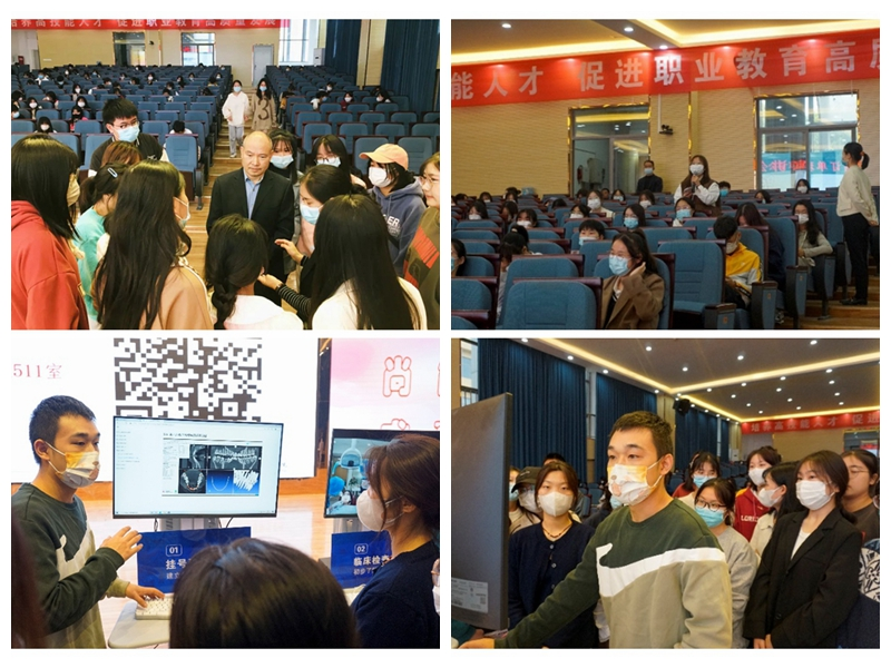 会后,华美牙科针对现场学生提出的关于订单班问题进行了解答。护理系学生在现场还体验了现代口腔数字化设备。