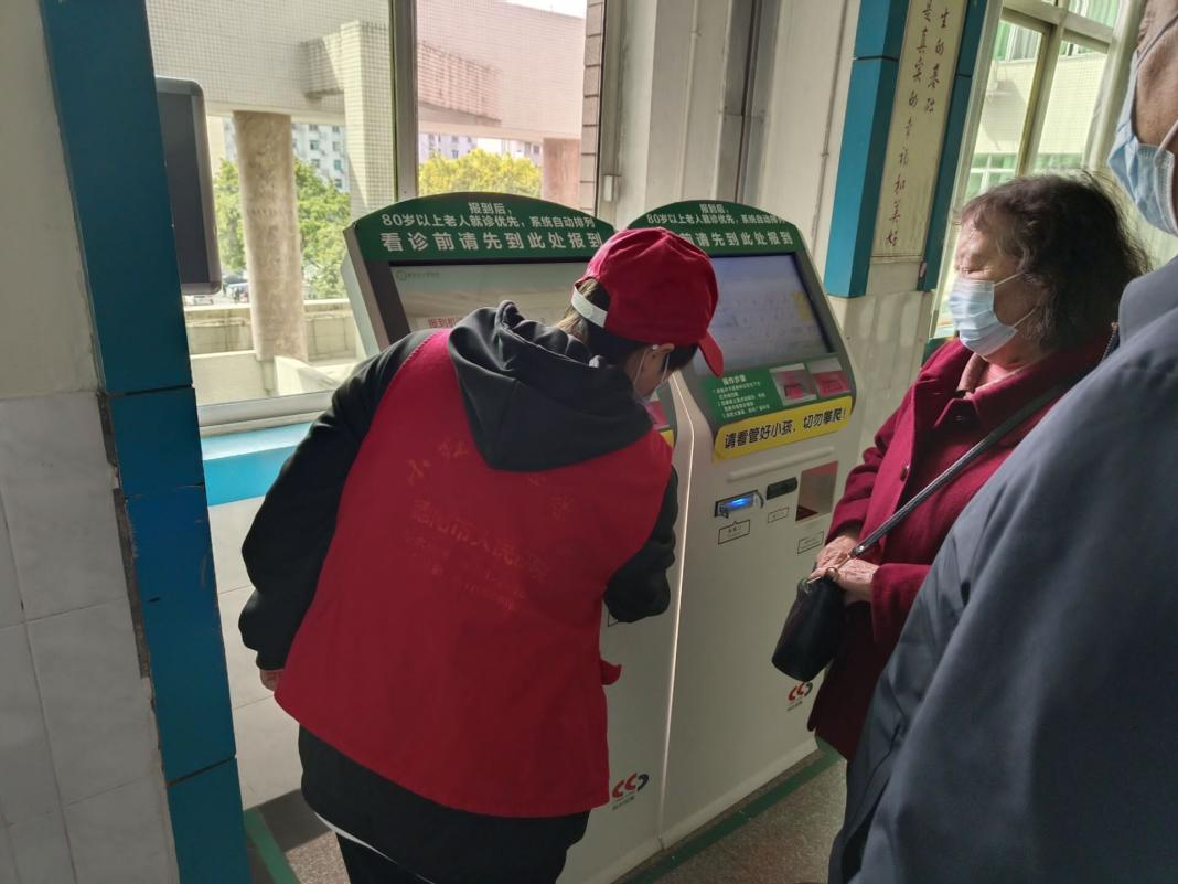 在德阳市人民医院,志愿者们在门诊为患者提供自主挂号、自助缴费等咨询服务,同时进行了导诊咨询,协助工作人员分诊等工作。医院大厅处处可见他们忙碌的身影,他们为患者带去了温暖。