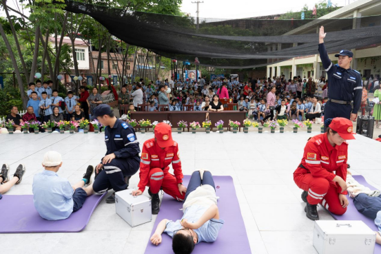 活动通过理论讲解、现场演示和实际操作相结合的方式进行。护理系志愿者向师生普及常规急救知识,现场讲解心肺复苏、海姆立克急救法、儿童成人异物卡喉咙、中暑处置等。随后,志愿者进行了急救演练展示,主要包括检伤分类、心肺复苏、不同伤情急救处置、消防器材使用等。志愿者们还现场指导师生进行模拟人急救实践操作,手把手教学如何识别心搏骤停,进行高质量的胸外按压、人工呼吸等。最后,志愿者们为小朋友们送上了节日的祝福。现场学习气氛热情,交流互动积极,在志愿者的指引下学校师生很快掌握了基本的心肺复苏技能。