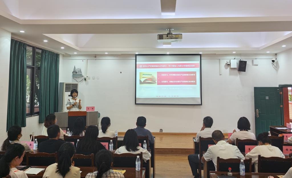 康复系党总支邀请学院纪委副书记、纪委办公室主任肖丽以《坚持以严的基调强化正风肃纪 努力增强人民幸福感获得感》为题,为参加本次活动的全体党员上了一堂精彩生动的廉政专题党课。党课紧紧围绕牢牢把握全面从严治党的意义和使命、准确认识全面从严治党的任务和挑战、有力推进全面从严治党向深向实三个方面进行了深入阐述,教育引导党员、干部职工提升政治站位,牢记初心使命,坚守纪法规矩,做到廉洁从业。