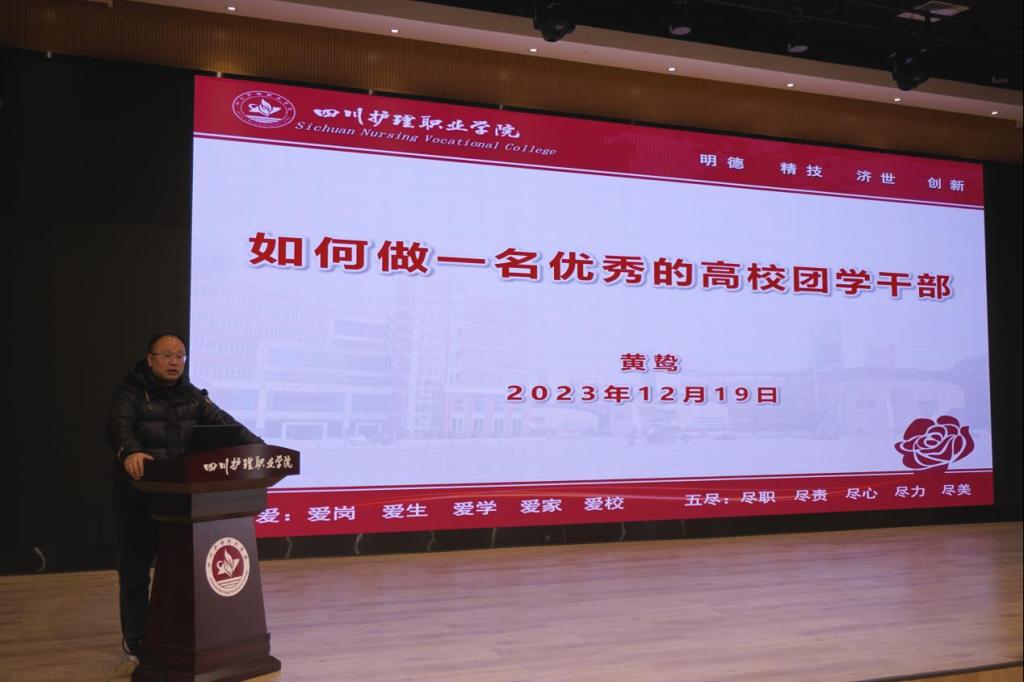 系党总支书记黄鸷以“如何做一名优秀的高校团学干部”为题向团学干部授团课。他结合自身多年的学生工作经验,从新时期团学工作新要求、新形势、新任务出发,引导团学干部做到在团爱团、在团言团、在团为团,做一名思想素质过硬、工作能力强、具有高度责任心、在学生中具有极强号召力和感染力的团学干部,为学院“双高计划”建设贡献力量。