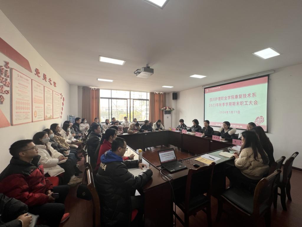 1月11日,康复技术系在成都校区召开期末教职工大会,全系教职工参会,会议由系主任郑爽主持。