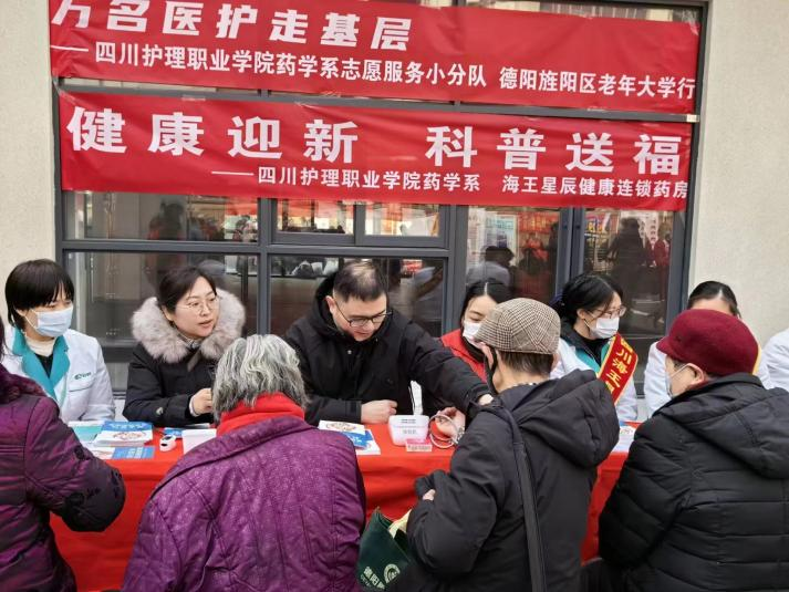 为持续推进“万名医护走基层”志愿服务活动,守护基层大众健康,1月25日,药学系联合海王星辰连锁药房在旌阳区老年大学开展“万名医护走基层”志愿服务活动,覆盖500余名社区居民。