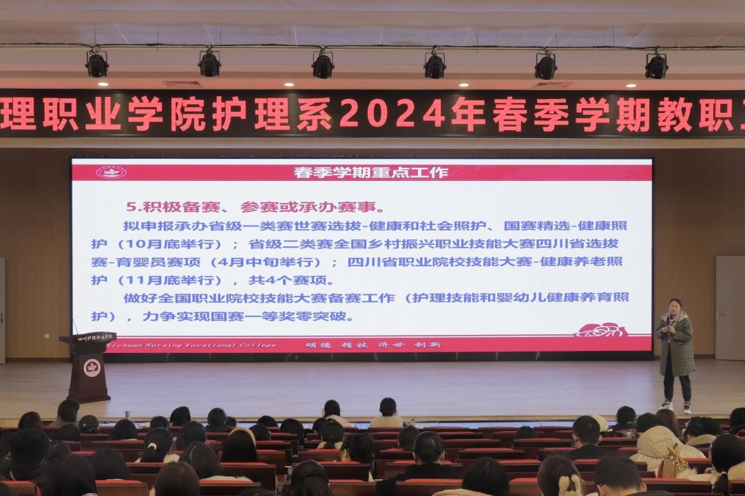 2月25日,护理系2024年春季学期教职工大会在德阳校区举行。系主任邓小利,系党总支书记黄鸷,副主任苗泓丽、淳玲,党总支副书记田炼出席会议。系部全体教职工参加会议。会议由邓小利主持。