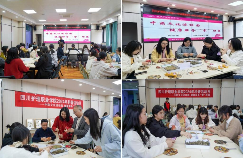 3月27日,药学系在德阳校区举办“中药文化进校园,健康服务‘零’距离”主题科普活动。中药学专业教师孟保华作中药相关知识宣讲,中药社成员及学生志愿者为师生教授香囊缝制技巧,师生积极参与、反响热烈。