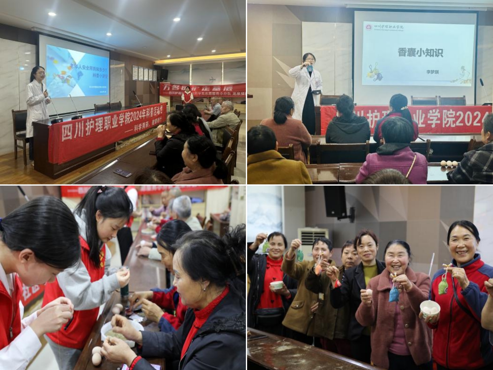 3月26日,药学系到成都市龙泉驿区书南社区开展“科学用药,健康随行”“中药文化进社区,健康服务“零”距离”两大主题科普活动。药学系教师谌茜、李梦琪分别作老年人安全用药和香囊相关知识宣讲,中药社成员及学生志愿者教授香囊缝制技巧,社区参与30余人。