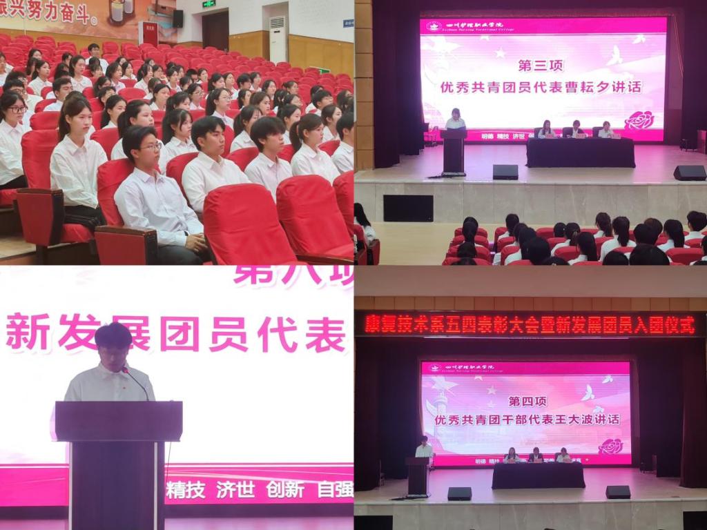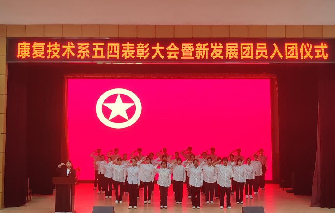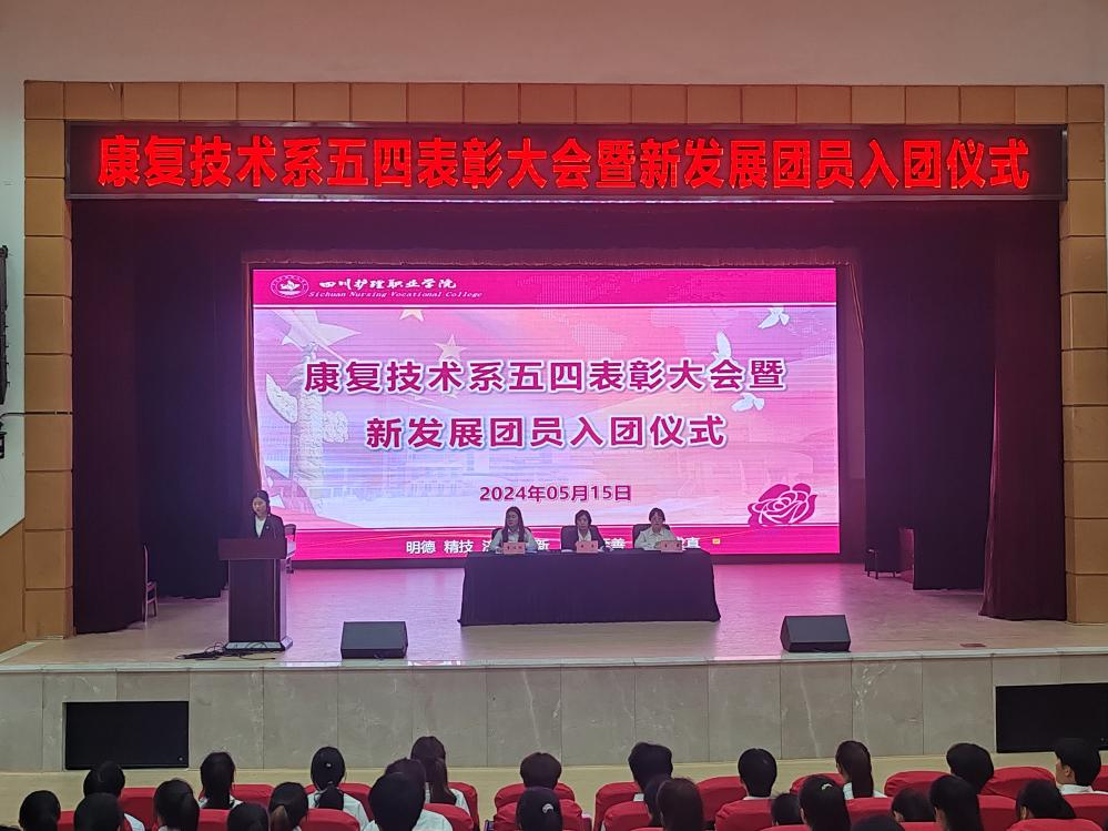 近日,康复技术系2024年五四表彰大会暨新发展团员入团仪式在学院成都校区举行。康复技术系党总支书记黄萍、学生科科长夏露、团总支书记李佳欣出席表彰活动,活动由王映玥主持。