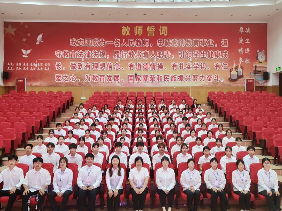 入团仪式上,夏露宣读新发展团员名单,黄萍和李佳欣分别为新发展团员代表逐一佩戴团徽,全体团员齐声庄严宣誓。