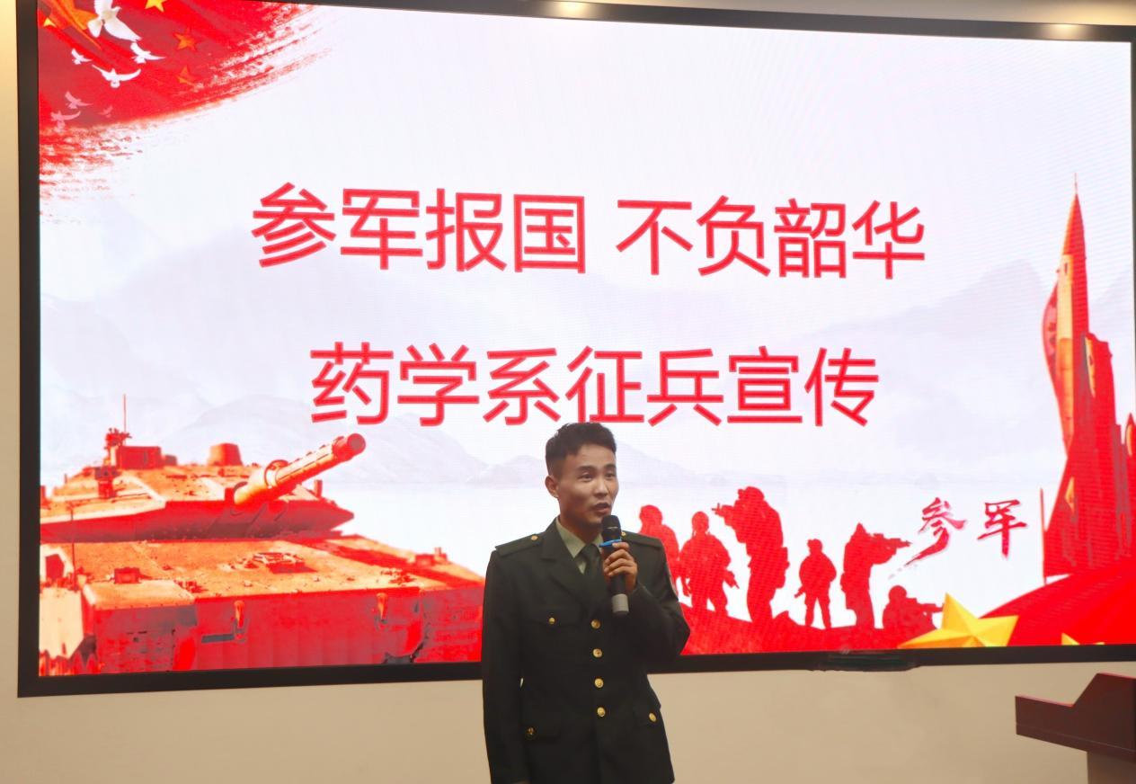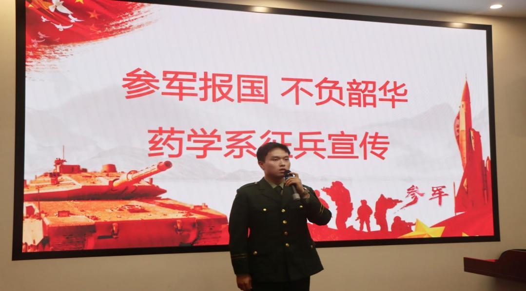 为积极响应国家号召,激发有志青年投身国防事业,药学系于6月27日在成都校区举行“参军报国 不负韶华”征兵宣传会。学院人民武装部征兵办公室老师和药学系学生代表参加会议。会议由药学系党总支书记施晓莉主持。