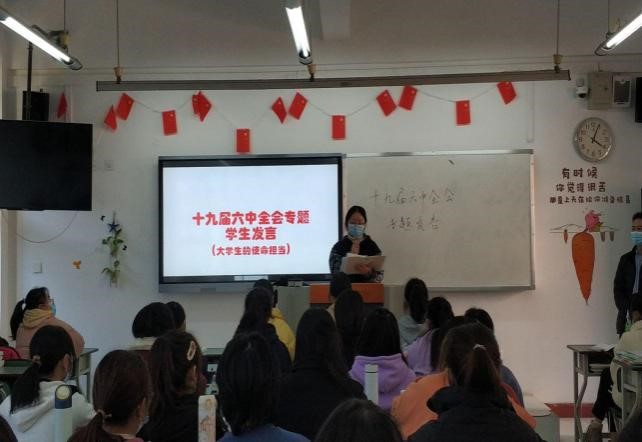 广泛宣讲,让全会精神进课堂。发挥思政课堂主渠道作用,结合课堂教学内容,思政课教师把冒着热气的全会精神融入教学中。通过对全会基本情况、召开背景、主要内容的讲解,推动全会精神“进课堂”,引导大学生深刻理解党的百年奋斗重大成就和历史经验,从百年党史中汲取奋斗力量,为实现中华民族伟大复兴的中国梦奉献青春力量。