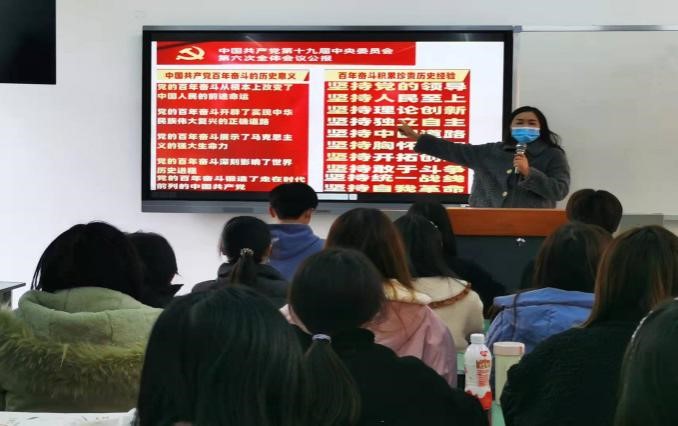 中国共产党第十九届中央委员会第六次全体会议胜利闭幕,76net必赢线路检测中心结合思政教学实际,通过集体备课、教师宣讲、社团研讨等多种方式,积极推动全会精神“进讲义、进课堂、进头脑”。