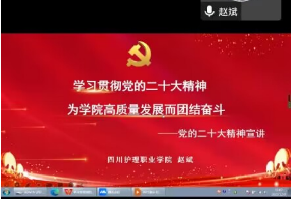 为认真学习、深入领会、大力宣传、全面贯彻党的二十大精神,切实引导全体教职工自觉将思想和行动统一到党的二十大精神上来,12月9日,学院党委委员、副院长赵斌为康复技术系全体教师讲授“学习贯彻党的二十大精神,为学院高质量发展而团结奋斗”专题党课。康复技术系全体教师参加学习,本次党课由康复技术系行辅党支部书记沈林主持。