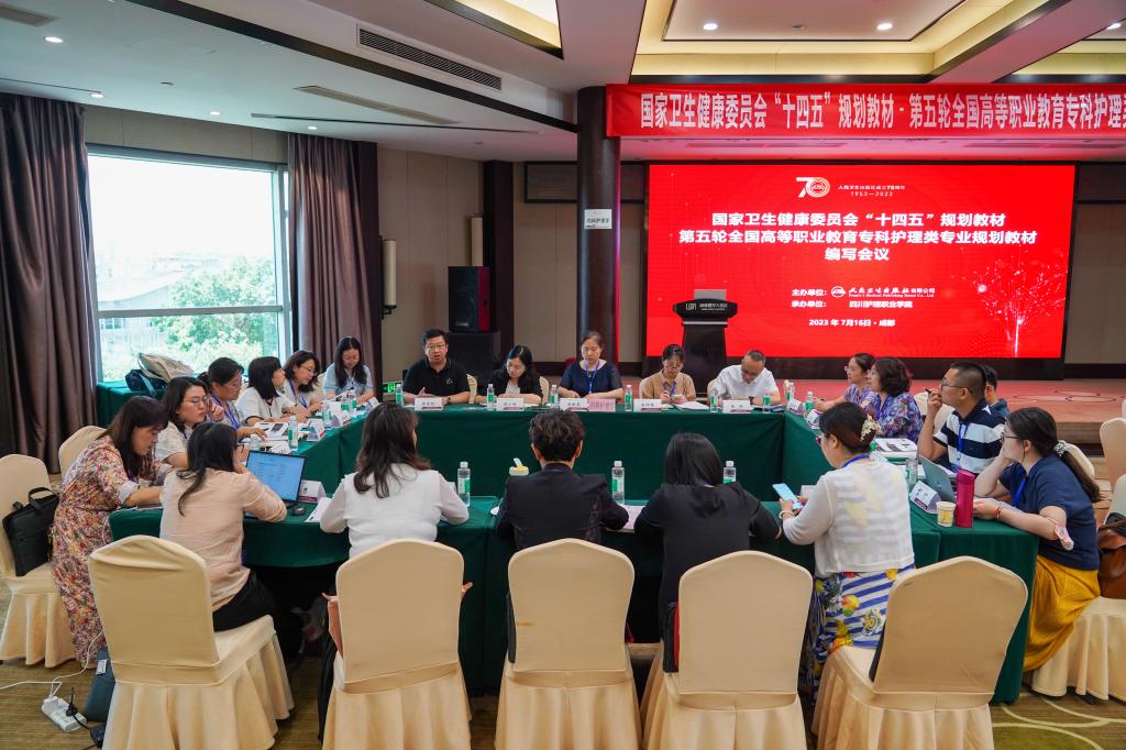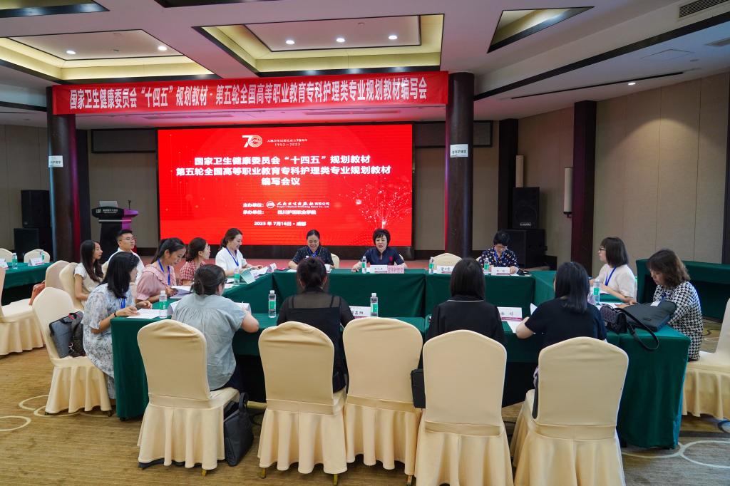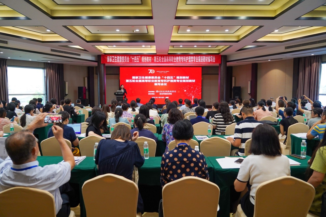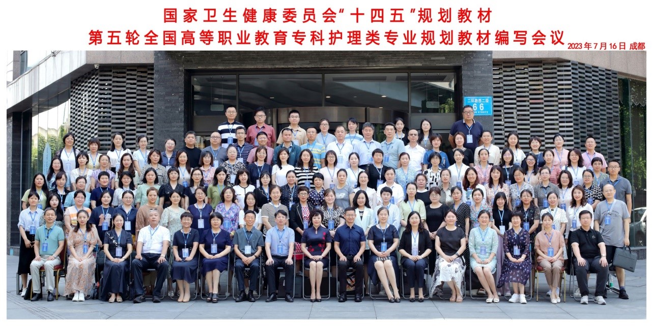 在全面学习贯彻习近平新时代中国特色社会主义思想主题教育和党的二十大精神之际,7月16日,由人民卫生出版社主办,76net必赢线路检测中心承办的国家卫生健康委员会“十四五”规划教材第五轮全国高等职业教育专科护理类专业规划教材编写会议在成都召开。人民卫生出版社有限公司医学教育中心职业教育部主任裴中惠及团队、学院院长张先庚及相关处室负责人和来自全国25个省市自治区各高等院校的8门教材主编、副主编及编委116人参加会议。会议由副院长梁小利主持。