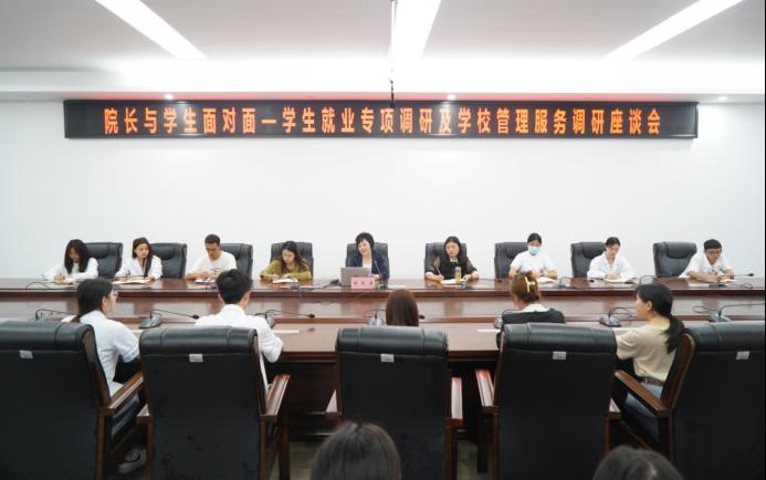 为持续推动学习贯彻习近平新时代中国特色社会主义思想主题教育走深走实,扎实开展调查研究,聚焦师生的急难愁盼问题,进一步强化内涵建设,5月25日,学院党委副书记、院长张先庚牵头,在成都、德阳两校区线上线下同步召开院长与学生面对面——学生就业专项调研及学校管理服务调研座谈会,与学生亲切交流,倾听诉求,共话发展。党政办公室、人事处相关负责人及两校区80名学生代表参加会议。